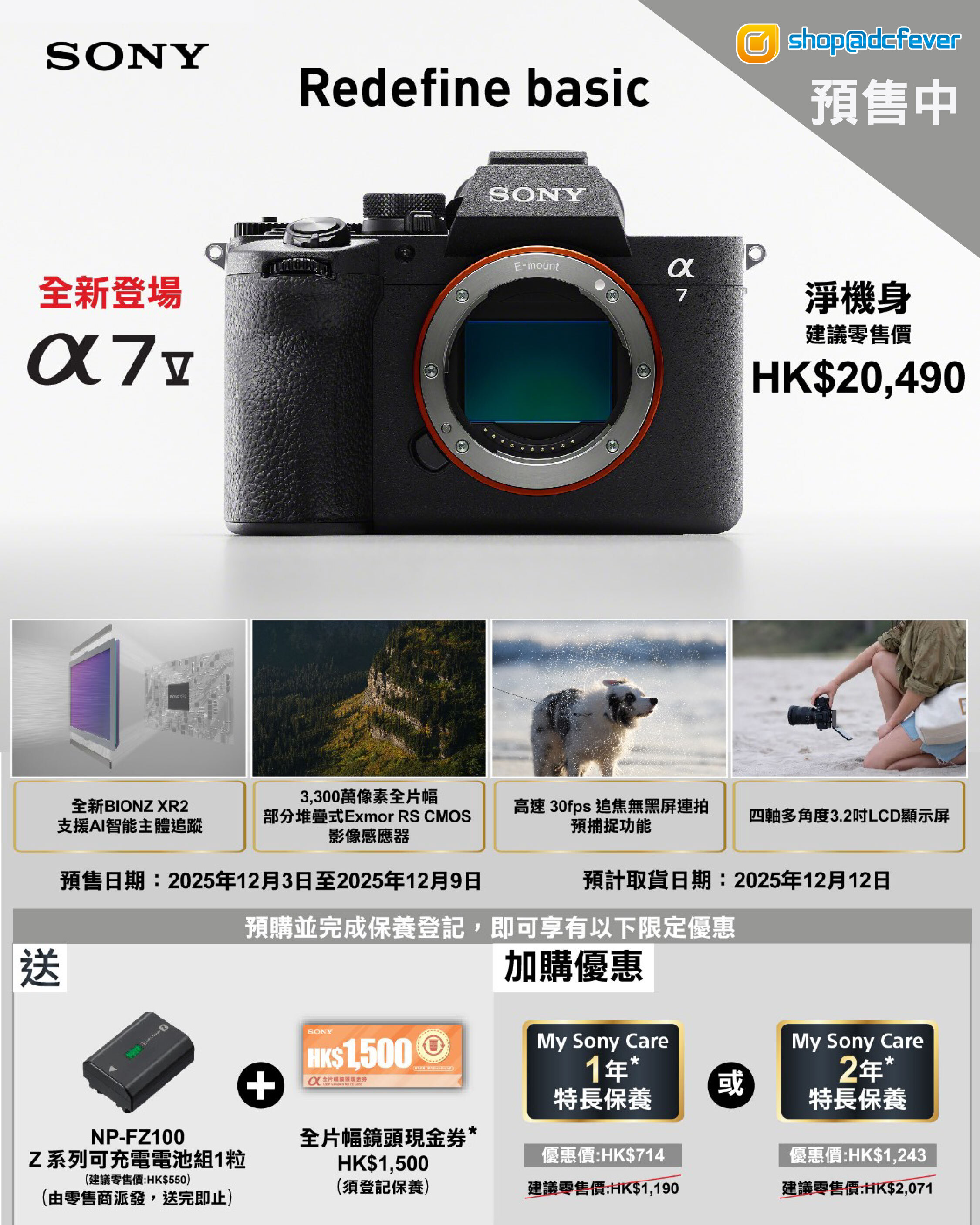 Sony a7 V是一款混合型無反相機,擁有出色的照片拍攝性能、強大的錄影能力,並搭載了來自其旗艦機型的最新 AI 主體識別和自動對焦技術。這款相機專為內容創作者打造,功能強大,足以應付從高速運動攝影到日常 vlog,再到活動全程多媒體報道等各種拍攝任務。